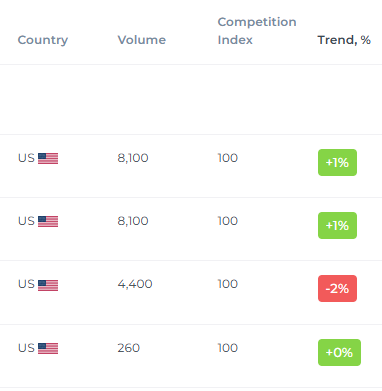- Competition Index — difficulty of ranking for this keyword and the number of competitors in search results
